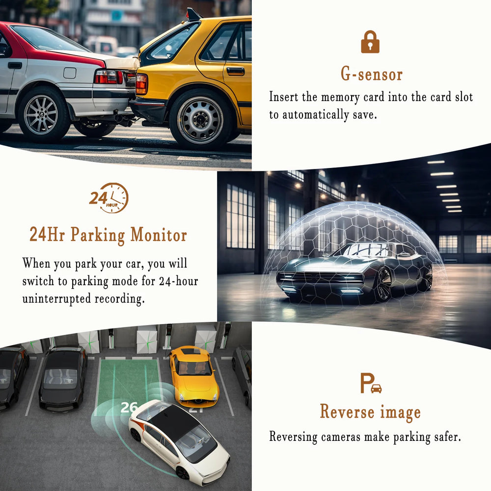 While competitors limit you to front views, our quad-lens system captures every angle. Gain total peace of mind with 360-degree coverage that eliminates blind spots and secures your vehicle day and night.